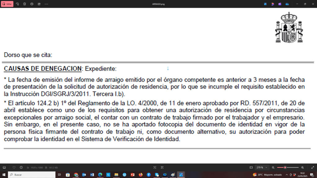 1- Informe de inserción social caducado. Más de 3 meses