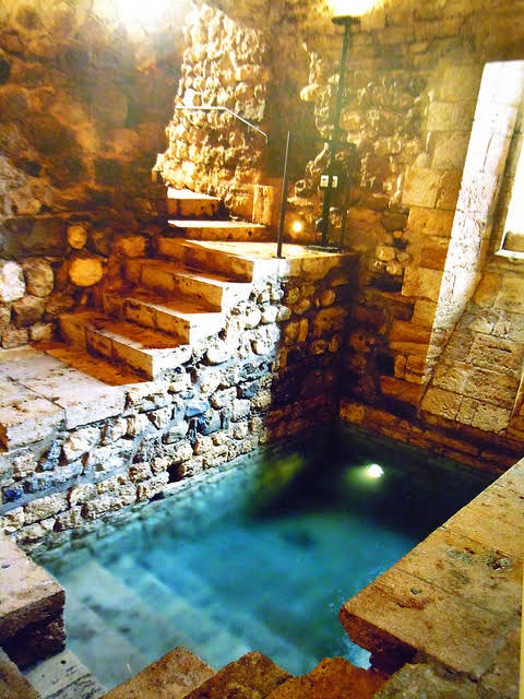 Los Mikve, son unos habitáculos donde los judíos hacen y hacían baños sagrados, pero estos de Girona, y este de Besalú, tiene la característica de que constantemente se está filtrando y regenerando, debido a la composición volcánica este subsuelo.