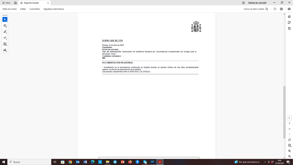 Sirva este ejemplo, de un cliente mío, para mostrar, el grado de observancia, investigación y exactitud, que exige la oficina de extranjería de Barcelona, para, en este caso, exigir acreditar el periodo comprendido entre las fechas 29/01/2023, y 27/02/2023.
